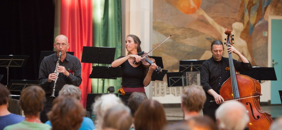 Klezmajeur (klarinet, accordeon, viool, contrabas) en piano